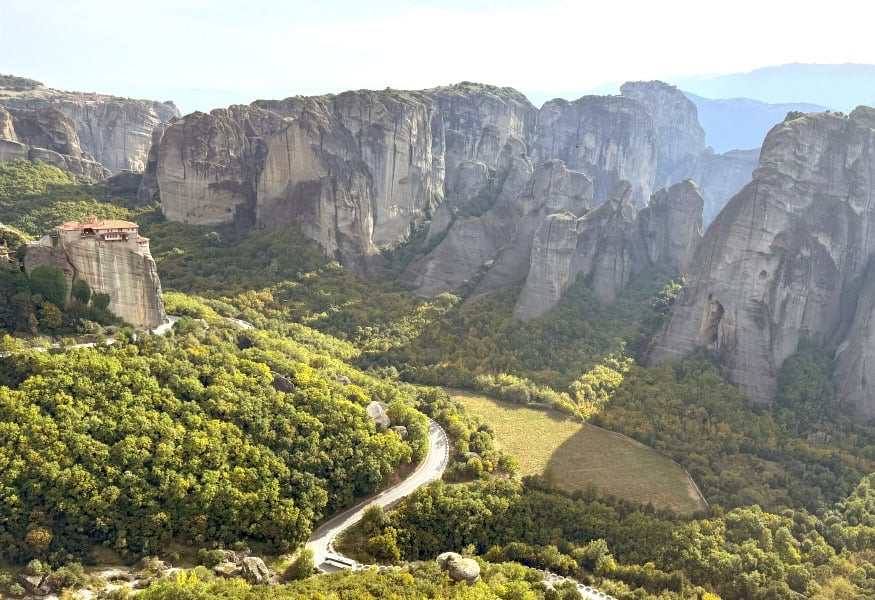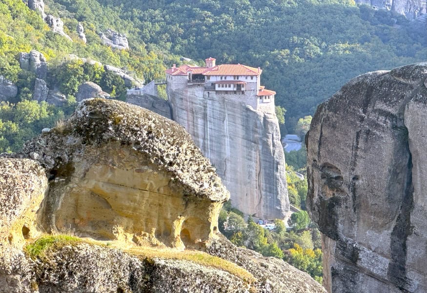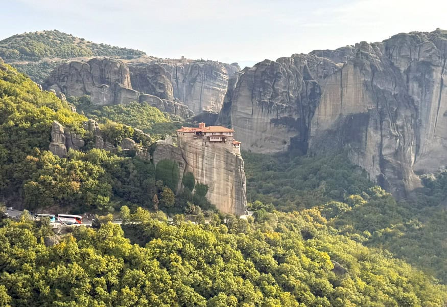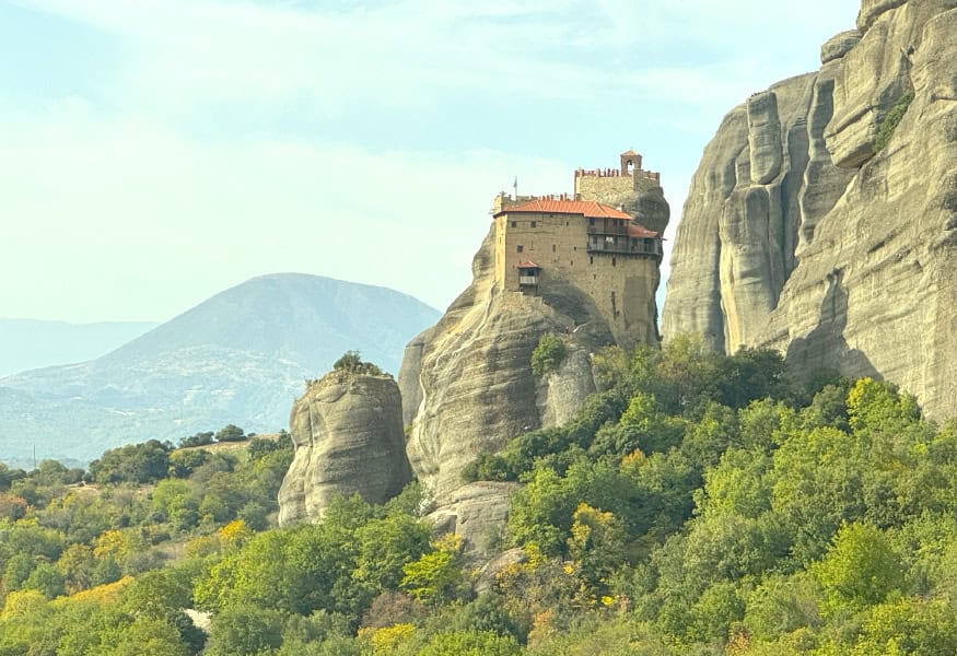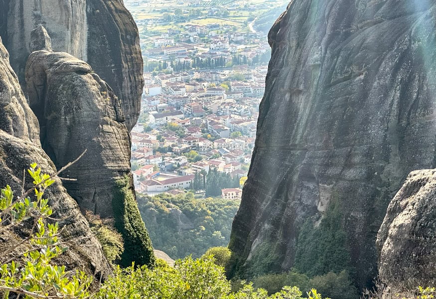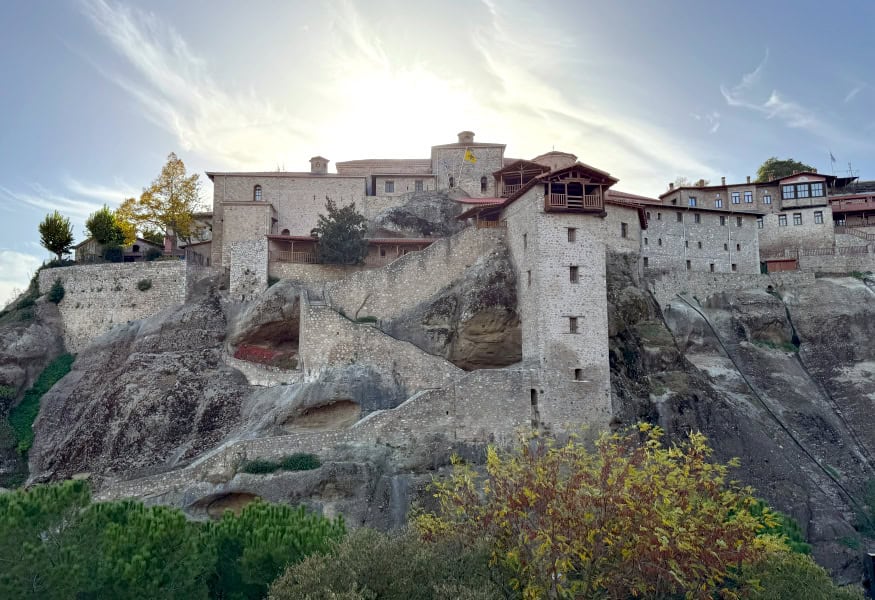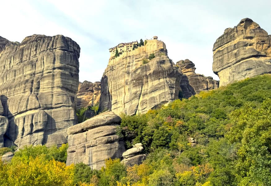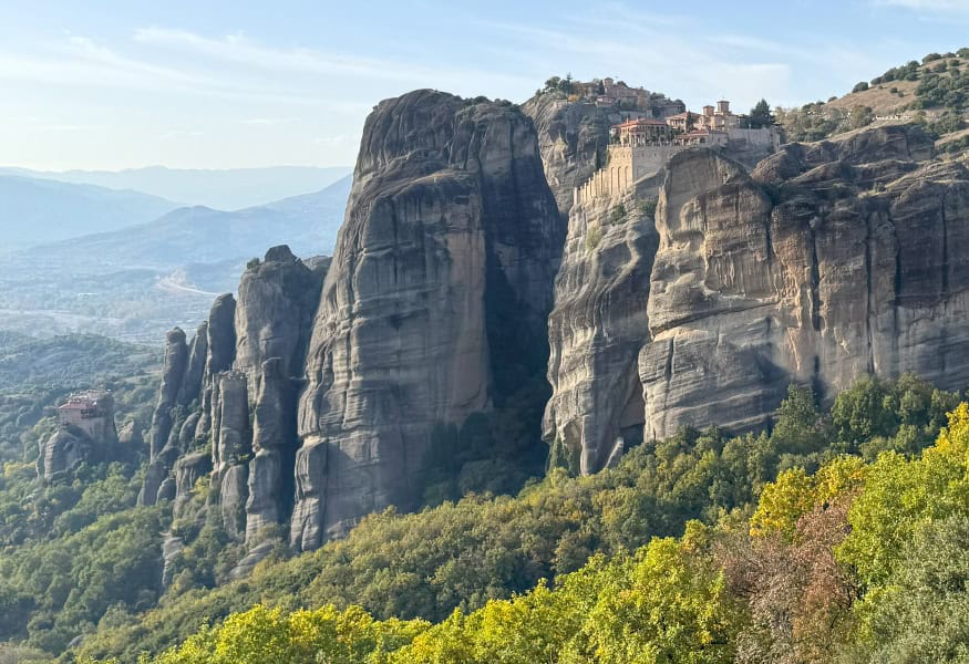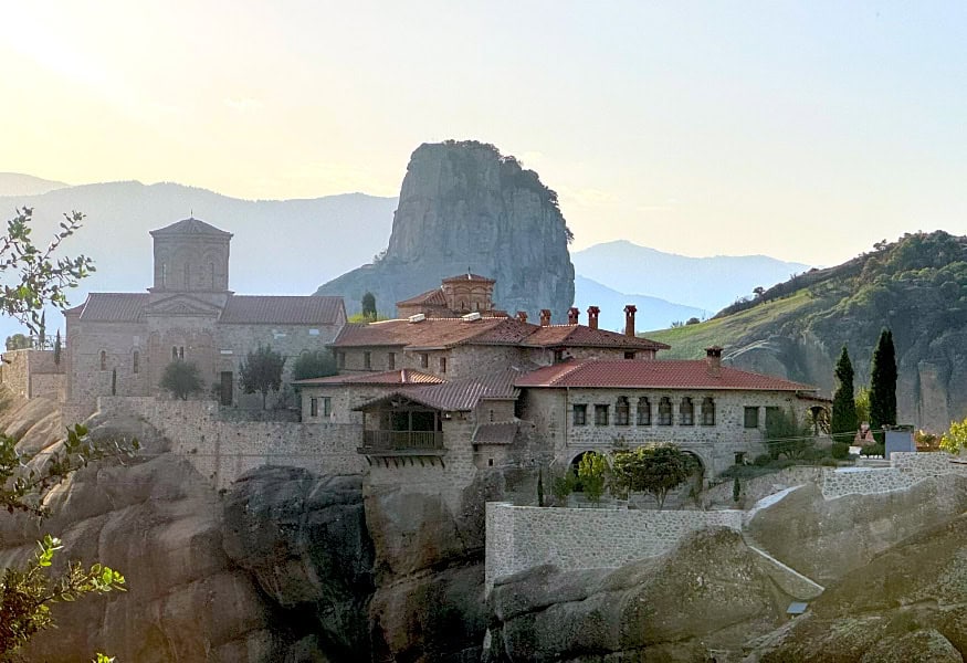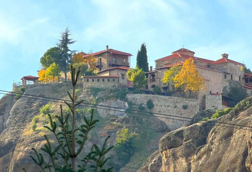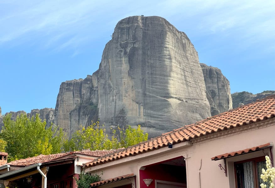 Seeing Meteora for the first time is something you’ll always remember. When you get close to the area, whether you’re driving or taking the bus, the scenery changes considerably. The flat Thessaly plain opens up to a cluster of huge, smooth rock pillars that look like they’re just hanging out, defying gravity. These amazing formations stand tall on the horizon, evoking a sense of wonder and excitement that only places as iconic as Zion National Park, Sedona and Bryce Canyon can compare. For us, seeing this is both inspiring and a cool reminder of the amazing power of nature. The charming little villages of Kalambaka and Kastraki, right at the foot of these massive rocks, are perfect spots to kick off your adventure.