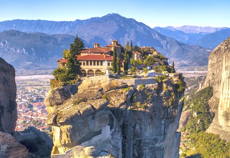 Holy Trinity Monastery is arguably the most recognizable monastery because of its well-known appearance in the James Bond film For Your Eyes Only. It is perched on a dramatic, remote rock pillar. With a zigzag route and a number of steps, the climb is a little more difficult, but the amazing views and sense of achievement make the effort worthwhile. For those seeking a slightly more active challenge, the well-maintained path provides a rewarding experience.