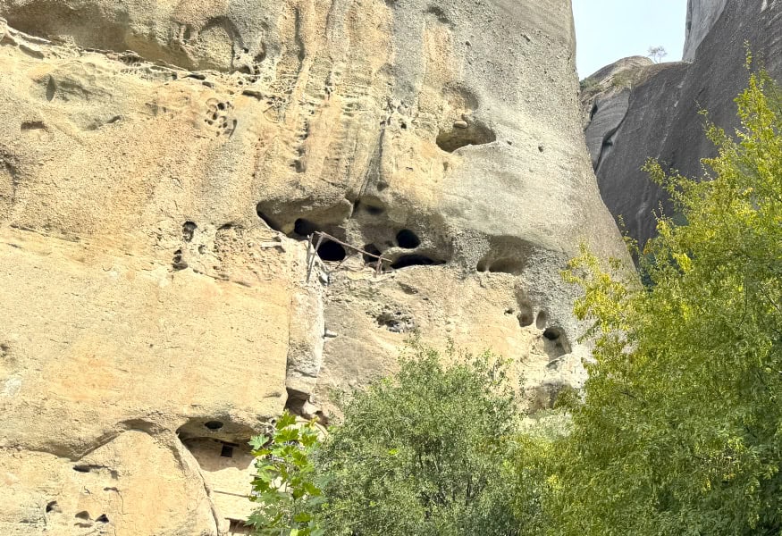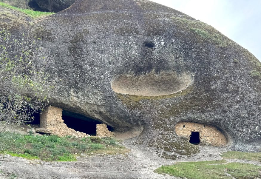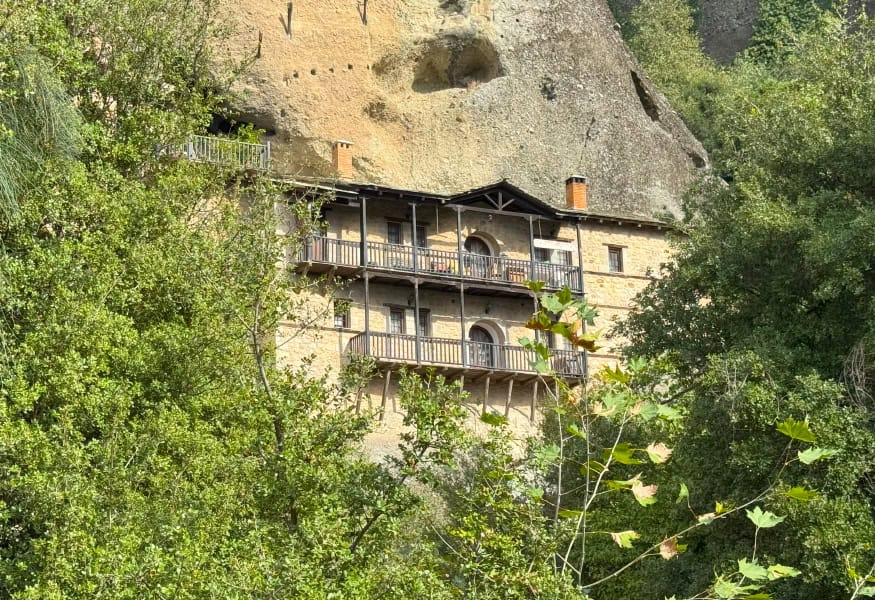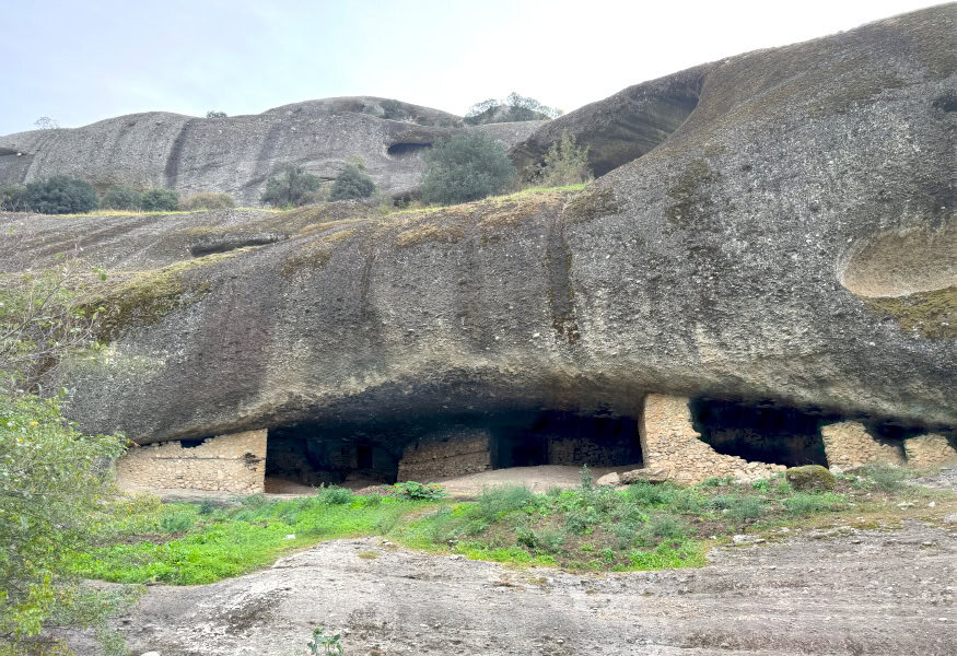 Near Roussanou Monastery, a group of fascinating and historically significant caves named the Bandovas Caves were carved out of the rock face. In the early years of Meteora’s spiritual history, monks and hermits used these caves as hermitages. Although they are difficult to reach, they are visible from the road and provide an intriguing window into the early occupants’ rudimentary way of life. Walking on the surrounding trails is enjoyable.