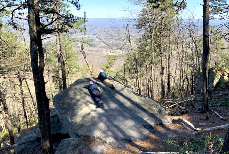 The path around Big Pinnacle is relatively flat and easy and, along with spectacular valley views, there are also some fantastic natural stone steps that make it even more interesting. As you get to the east-facing portion the morning sun really lights up the cliff faces while also creating shadows that give the rocks even more character. Depending on the time of day you’re hiking you’ll round a corner and suddenly lose the sun, experiencing a noticeable decrease in air temperature. In the summer you’ll appreciate the change but in the fall or winter it can get quite chilly in an instant.